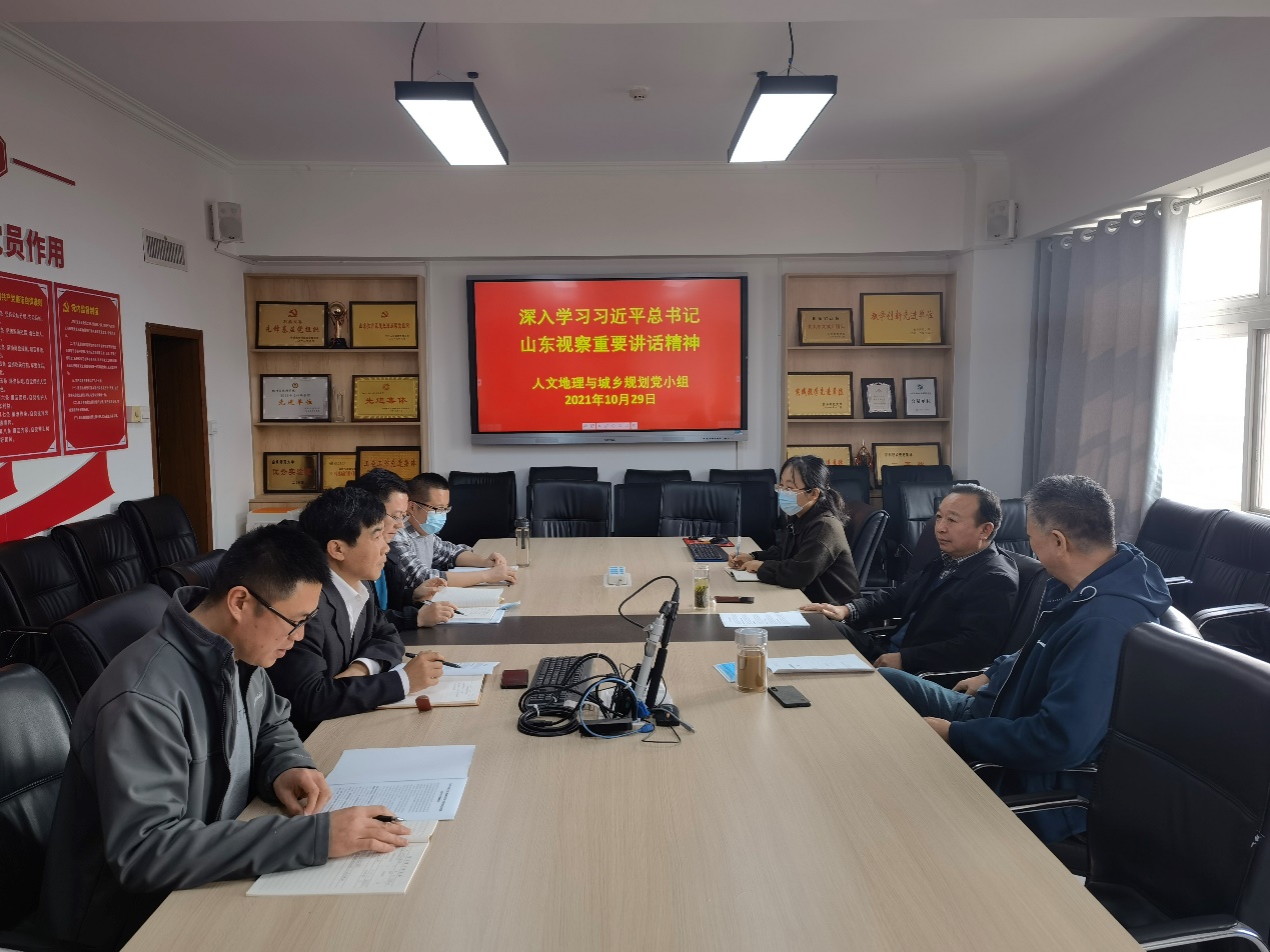 教工党支部各党小组组织开展了学习活动,并结合专业特色进行了深入研讨。地理科学党小组各位党员同志根据自身研究方向,讨论了关于黄河流域不同河段存在的问题,并计划围绕水资源调控、生态环境保护、水利工程建设等议题开展研究,努力为黄河流域区域发展提供理论和技术支持。自然地理党小组在深入学习习近平总书记重要讲话的基础上,围绕“合理利用湿地资源,实现区域营养盐平衡”展开研讨,在区域氮磷污染物的统防统治和陆源氮磷污染物排放监督管理等方面提出对策建议。人文地理党小组各成员结合自身在城市与区域发展研究方面的专长,在黄河中上游生态保护与区域发展、黄河中下游重点城市的发展规划、黄河流域水资源开发与配置、黄河流域水环境监测与灾害防控等方面进行了深入讨论。旅游管理党小组针对课堂思政如何更好得融合课堂教学展开讨论,党小组成员介绍了各自的课堂思政建设经验,并对如何更好得服务地方经济发展进行了讨论。土地资源管理党小组对黄河流域土地利用转型与集约开发展开研讨,提出要进一步强化土地保护,提高土地利用效率,开展土地利用冲突研究,助力黄河流域生态保护和高质量发展。地理信息科学党小组结合各位党员在遥感、生态方面的研究特长,讨论了黄河流域的土地资源与生态环境保护面临的问题,对黄河流域资源监测提出了一些方法设想,力图通过相关研究为黄河流域资源开发与保护做出贡献。党员同志们积极响应,深入交流,提出了大量极具建设性的意见。