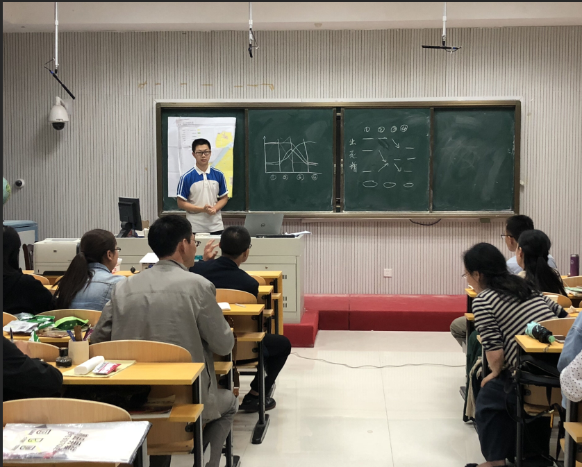 交流会分为两个展示和研讨两个环节。在展示环节中,耿老师首先为同学们呈现了一节绘声绘色的地区时差教学课堂,他举出生活中习以为常的例子引出本次课的主题,并层层递进地将课堂信息传达给同学们。准确生动的语言表达、独特新颖的教学方法、设计合理的教学过程赢得在场师生的阵阵掌声。随后,2015级地理科学专业三位同学上台进行模拟授课,他们自然流畅、富有创意的语言,端庄大方、挥洒自如的仪态彰显出番茄社区