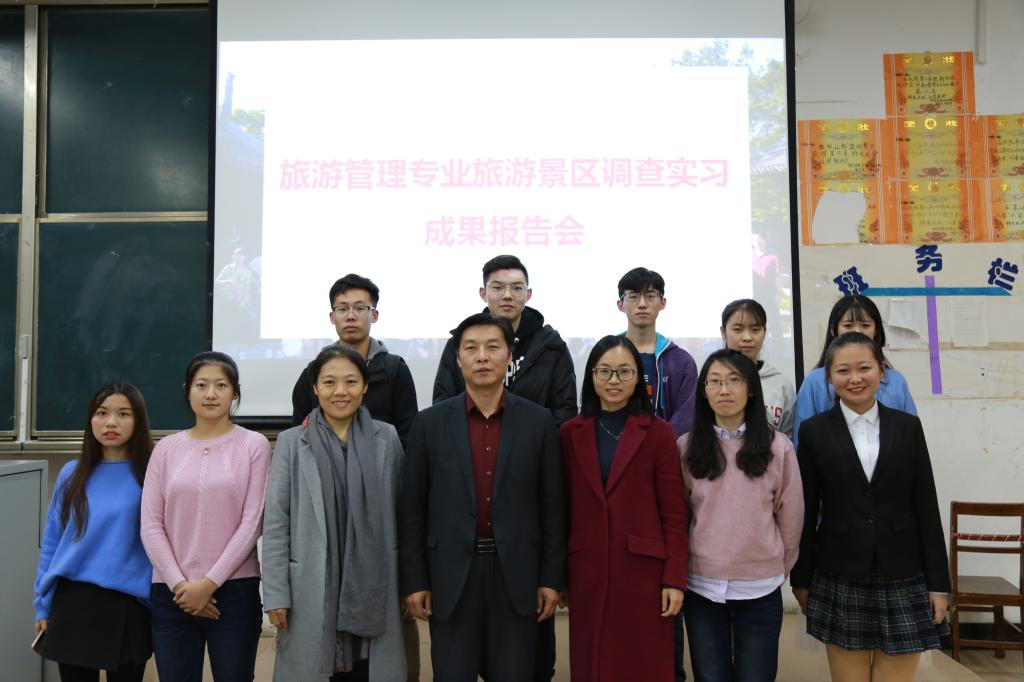党委书记胡长春、副院长吴军、旅游系主任石峰以及专业任课老师谭丽荣、邓薇、张岩君受邀出席,2016级和2017级旅游管理专业学生汇报了暑假旅游景区调查成果。