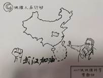 虽远隔千里,但心系武汉的曲园学子选择拿起笔,把对武汉的牵挂与祝福、对战役必胜的决心化作一幅幅板画、板书、板图。“学高为师,身正为范。”,只有拥有家国情怀的教师才能真正做到培育好祖国的下一代,只有不断提高师范技能才能在三尺讲台发光发热。因此,我们认真练习“三板”基本功,不荒废居家的宝贵时光,同时为武汉祈福,为中国加油。