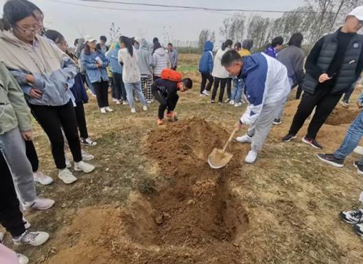 在自然气息浓厚的两城街道,潘继花、王振海为同学们详细介绍棕壤和潮土的地理分布、形成条件、形成特点与基本性状。同时生动地讲解土壤剖面样品采集与理化性质测试方法。之后,在老师的带领下,同学们用洛阳铲挖掘地面,并仔细观察剖面特征,进行发生层划分,认真记录各发生层形态特征。在完成采样点与剖面观测记录后将剖面复原。