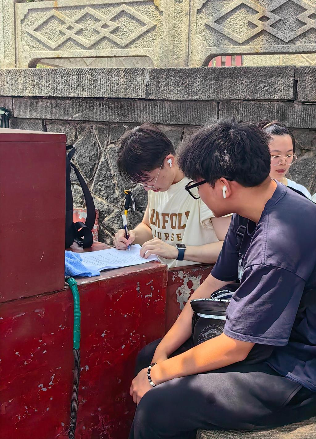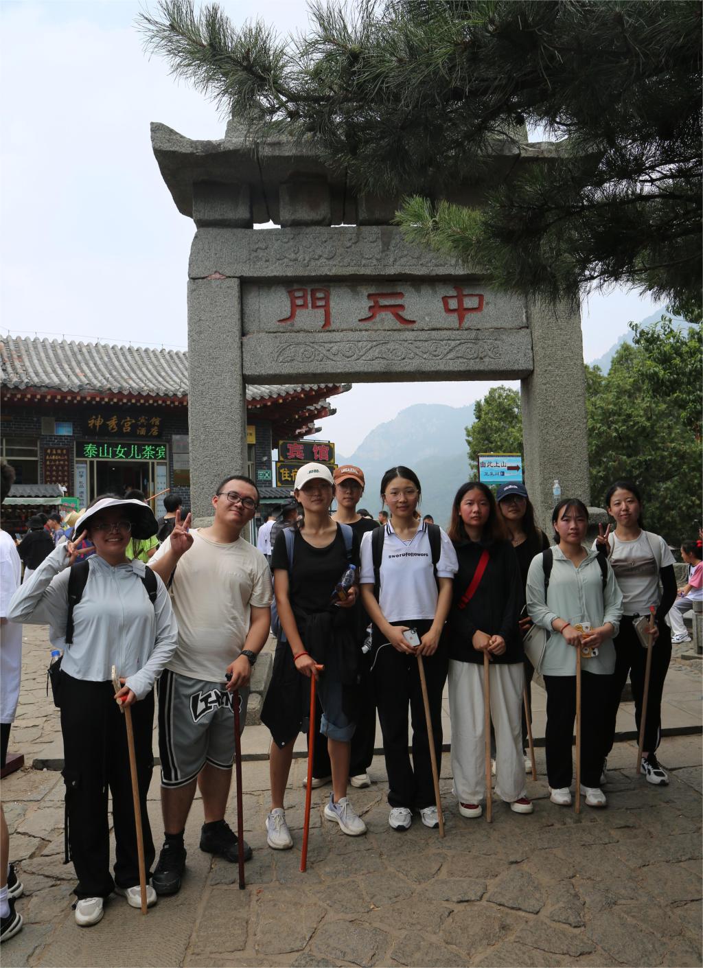 7月13日,老师和同学们到达泰山景区。泰山,以其雄伟壮丽的山势、悠久的历史文化和丰富的自然景观而闻名遐迩,是中华民族的精神象征之一。同学们在吴军副院长等老师带领下,沿着古老的石阶一步步攀登,从红门到玉皇顶,每个人深刻体会到了“会当凌绝顶,一览众山小”的豪情壮志。在登山途中,同学们向游客分发调查问卷,调查游客对摩崖石刻的感知以及对景区满意程度。