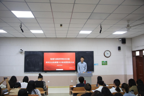 参与竞选的同学根据研究生会换届选举竞选要求,依次上台进行3分钟竞选演讲。竞选环节中,各位参选人员满怀信心和激情,以端庄大方的仪态和饱满的精神状态走上舞台,就自己的基本情况、对工作岗位的认知、竞选原因以及工作设想进行了演讲。随后进行了2022级班委竞选,2022级地理学班、学科教学(地理)班、旅游管理班参与竞选的同学依次上台以PPT、演讲等多样形式,展示自我蓬勃风采。经过班级同学民主测评等环节,最终确定2022级硕士研究生各班班委人员。