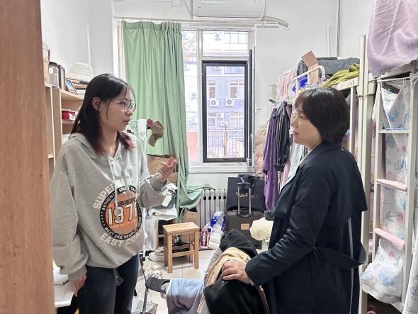 研究生辅导员赵岩带领研究生会主席团深入研究生宿舍进行全面检查。