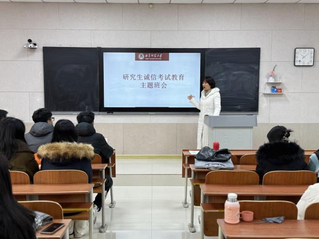 为加强研究生考试诚信意识,增强安全防范能力,12月23日上午,学院于S207召开研究生诚信考试和寒假安全教育会议,研一全体同学参加会议。赵岩老师主持会议。