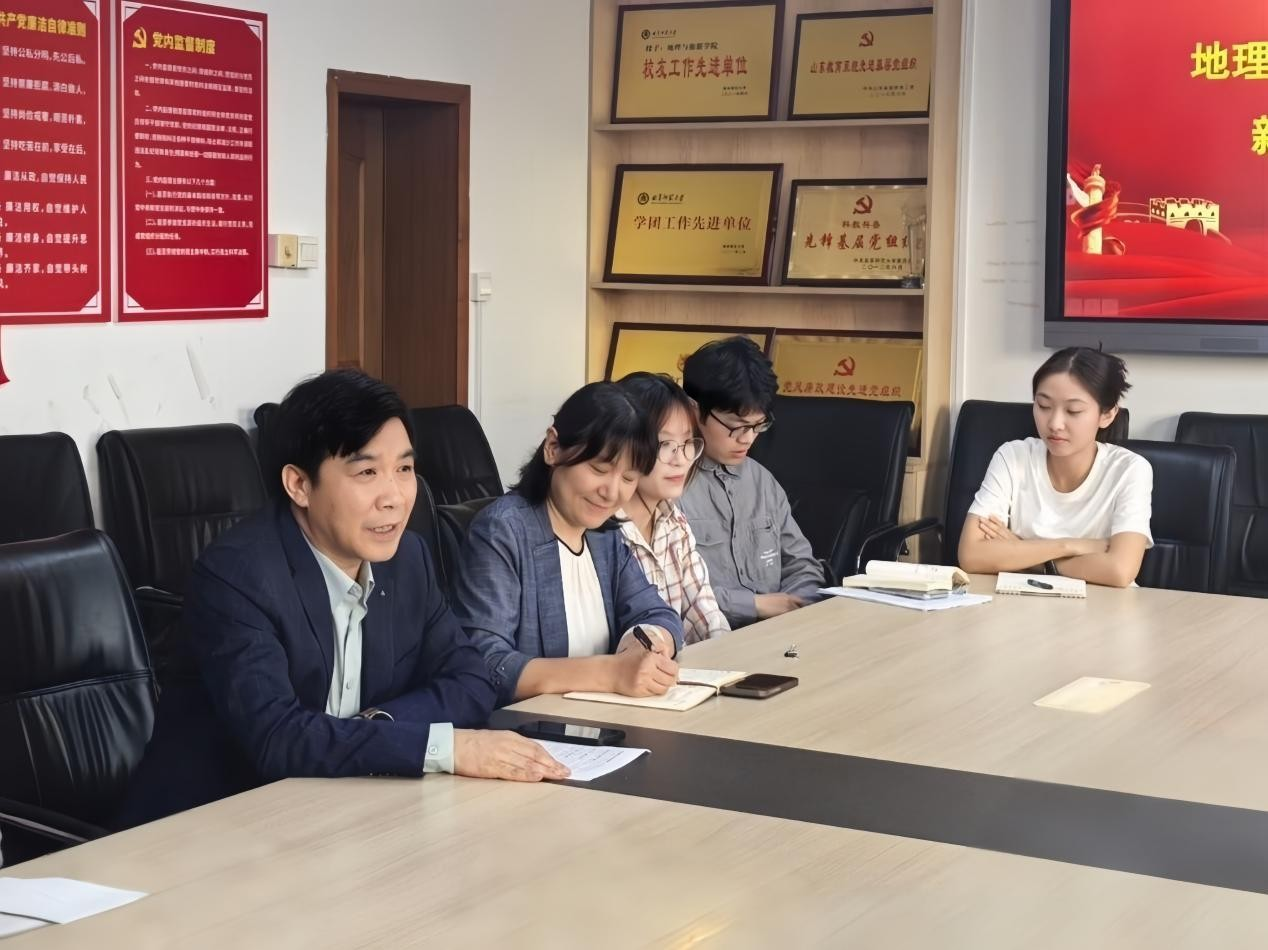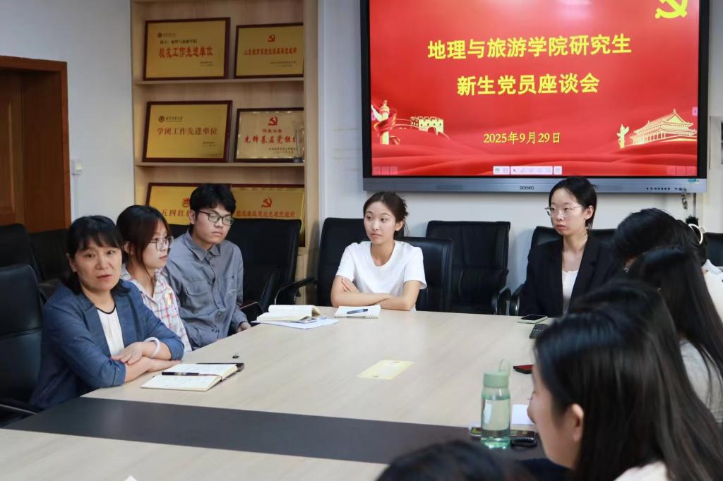 于会馆2401会议室召开2025级研究生新生党员座谈会。学院党委书记苏占兵主持会议,研究生辅导员赵岩、各党支部书记以及2025级研究生党员参加。