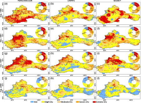 近年来,全球气候变暖导致干旱事件频发。干旱对自然生态系统和人类社会均产生了重大影响,在生态系统脆弱的西北干旱区尤为严重。西北地区地面气象站稀少、分布不均匀等问题,极大限制了干旱的精准监测。随着遥感技术的发展,卫星降水产品因其覆盖范围广、空间代表性强、分辨率高、数据滞后性小等优点成为干旱监测的宝贵资源。虽然遥感降水产品众多,但大多时序较短且误差特征各异。因此,如何筛选适合于区域尺度干旱监测的卫星降水产品变得十分重要。