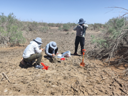 科考队制定了详细的工作计划,与地方政府对接交流后,对沿线沙漠、戈壁等不同地理单元进行了实地调研。科考队采用野外实地调查取样及摄影拍摄等手段,重点调查了乌鲁木齐-尉犁-沙雅-阿拉尔-和田-民丰-轮台-库尔勒沿线的地表覆被、土壤温度、土壤水分等地气关键要素,对调查区的不同深度土壤等进行了取样,采集土壤样品500余份,将为陆气关键要素遥感动态反演模型的构建与验证提供数据支持。