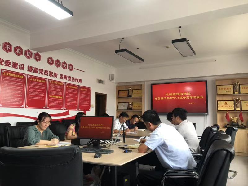 党委书记苏占兵主持召开党委理论学习中心组专题学习会。集中学习习近平总书记在“不忘初心、牢记使命”主题教育工作会议上的重要讲话、学校党委书记戚万学同志在学校“不忘初心、牢记使命”主题教育工作会议上的讲话精神。党委委员、各党支部书记、团委书记、部分教研室主任参加学习会。