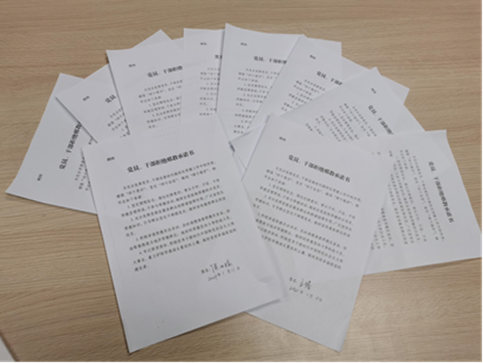 会后,党支部开展了“拒绝承诺”主题教育,通过学习签订《反承诺书》,进一步提高了全体党员识别、防范、抵御的自觉性、警惕性,强化了反对的责任感和使命感,使反对成为每名党员的思想自觉、行动自觉,从源头上制止了的滋生蔓延,营造了和谐稳定的校园环境。