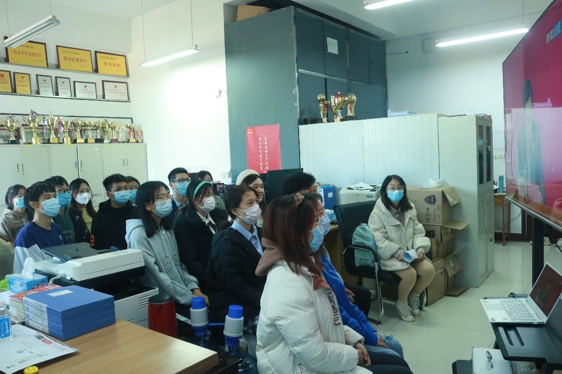 本科生党支部全体党员参与观看,党委副书记刘伟就会议内容进行总结并强调。