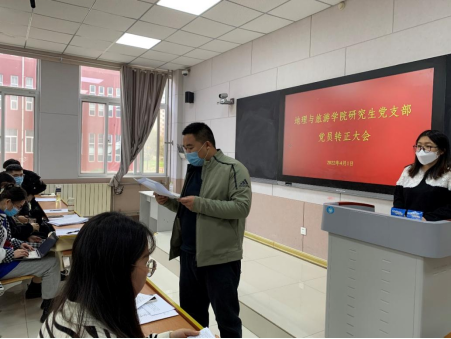 研究生党支部于S214教室举行党员转正大会。讨论审议刘凡、刘雪、李素素三位同志预备党员转正事宜。研究生党支部书记马振秀主持会议,党支部全体党员参加。