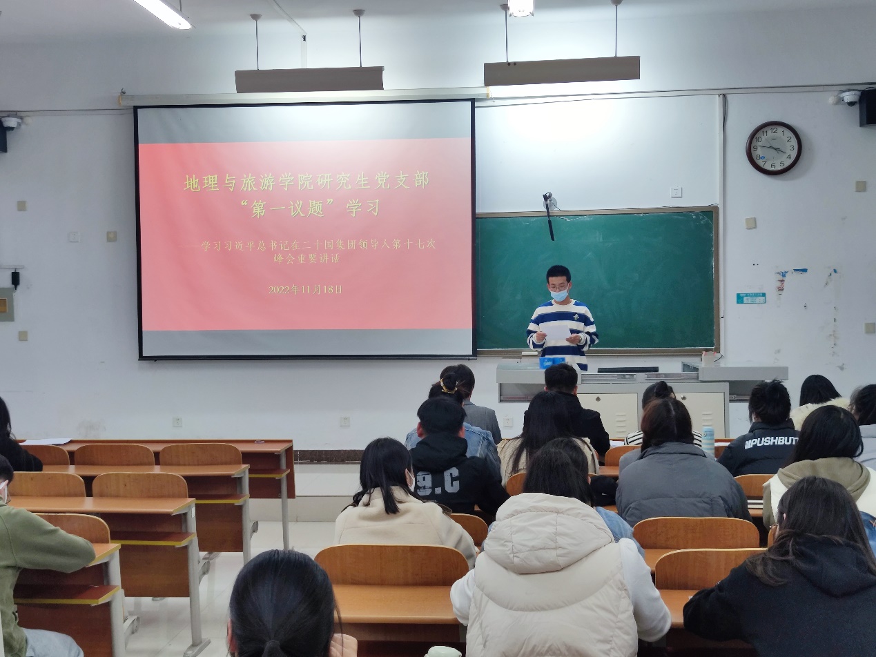 研究生党支部在S314教室组织集中学习并观看“灯塔大课堂”第三十六课,主题为《学习贯彻党的二十大精神 要做到“五个牢牢把握”》,本次学习由支部委员魏正通同志主持,全体党员参加。