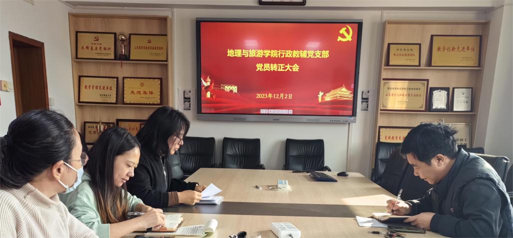 行政教辅党支部在会馆2401会议室召开党员转正大会。学院党委书记苏占兵出席,党支部书记邱兰兰主持会议。