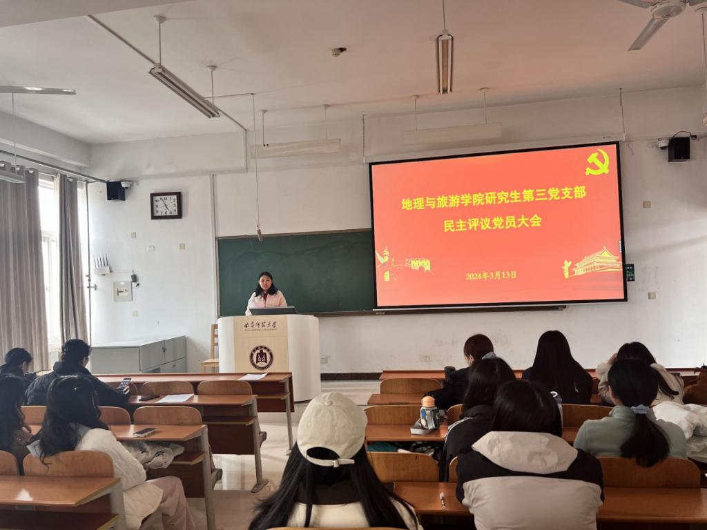 研究生第三党支部在S413召开2023年度民主评议党员大会。会议由支部书记徐佳蓓同志主持,全体党员参加。