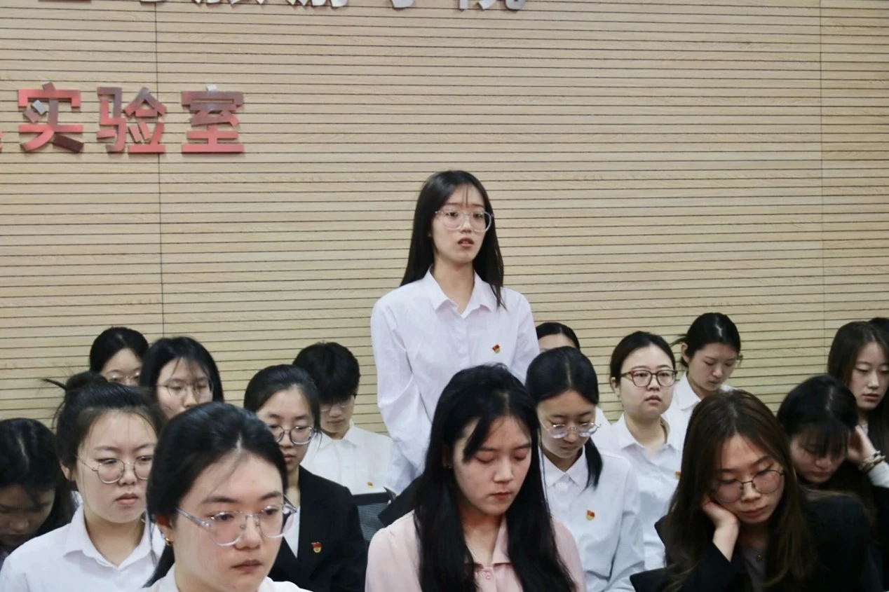 座谈会后,开展了重温一次入党誓词活动。全体党员面对鲜红党旗庄严宣誓:我志愿加入中国共产党,拥护党的纲领,遵守党的章程,履行党员义务,执行党的决定,严守党的纪律,保守党的秘密,对党忠诚,积极工作,为共产主义奋斗终身,随时准备为党和人民牺牲一切,永不叛党。这不仅是对初心的回望,更是勇担使命再出发。铮铮誓言激励毕业生党员无论投身科研、扎根基层还是服务社会,都要时刻以党员标准勇担时代重任,让青春在党和人民最需要的地方绽放光彩。