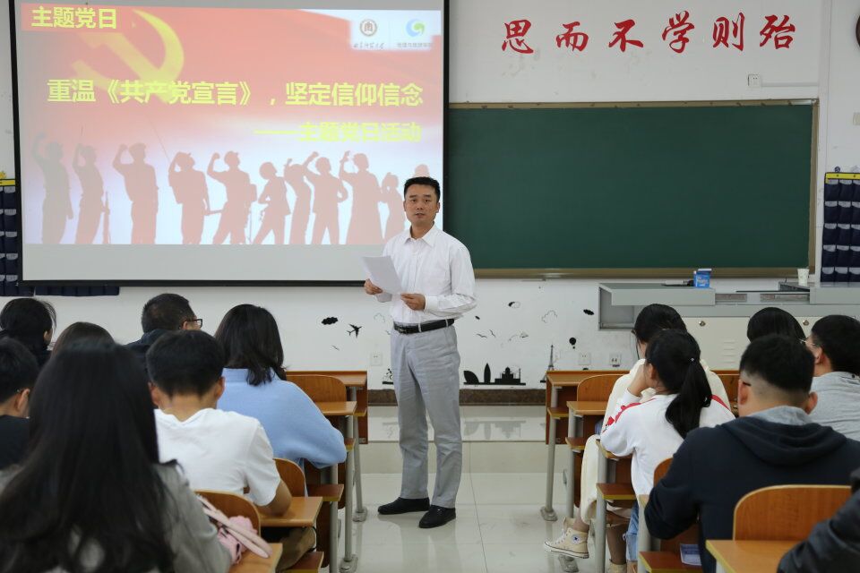 本科生、研究生党支部于S207举行“重温《共产党宣言》,坚定信仰信念”主题党日活动。学院党委副书记刘伟出席会议,全体党员参加活动,活动由本科生党支部书记宁晓文主持。