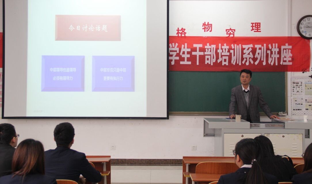 于S楼207教室组织青马工程暨学生干部培训系列讲座第三场。此次讲座由党委副书记刘伟担任主讲人,团委副书记马振秀担任主持,团委学生会学生干部参加。