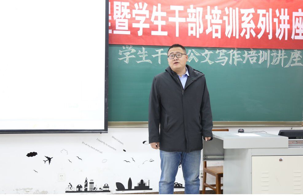 本次讲座分为新闻案例解剖和公文写作培训两部分。首先,陈鑫老师重点强调了学院积极开展学生干部培训的重要性与必要性,指出教育培训和实践锻炼是践行青马工程的主要途径,同学们应不忘初心,继续前行。