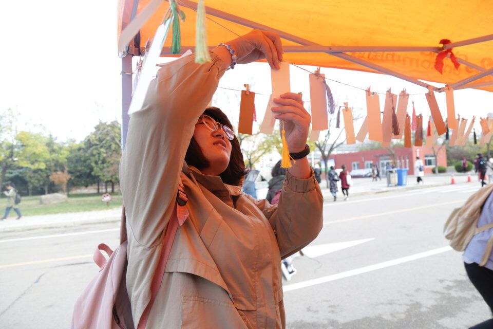 学生们对此次活动表现出极高的热情,独树一帜的寄托心愿的方式吸引一大批学生前来参加,他们纷纷将自己心中美好的愿望与祝福写在精美书签上,或希望家人健康,或希望学业有成,或希望万事胜意,并在最后把书签悬挂于红线上。活动过程中,社会实践部对参加此次活动的部分同学进行随机采访,询问其对于大学生活的认识和对未来的畅想,同学们纷纷表示自己的大学生活很充实,并且就未来的发展方向规划了长远目标,同时表明自己的决心和态度,充分展现了番茄社区