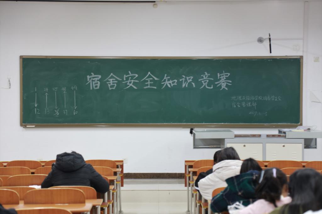 本次宿舍安全知识竞赛从消防知识、宿舍安全规范、逃生及自救知识等方面对同学们进行考察。赛前十分钟,各位参赛选手陆续到达教室,耐心等待比赛开始。答题过程中,同学们自信满满、严守纪律,凭借丰富的知识储备,尽自己最大努力去完成每一道题目,充分体现出地理学子高度的自觉意识和严谨的学习态度。宿舍管理部成员严格维持考试纪律,给参赛选手营造良好的答题氛围,同时认真巡视,确保比赛的公平公正。