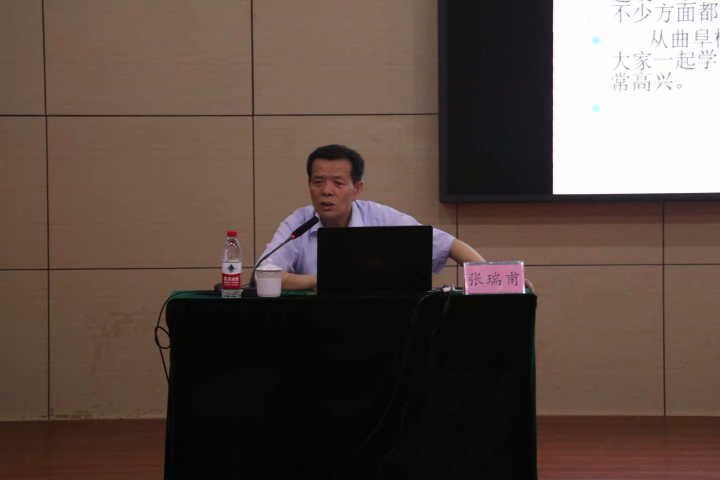 张瑞甫首先围绕两院的发展历程及学科建设情况等方面展开讨论,充分肯定了两院近年来取得的优异成绩。紧接着,张瑞甫结合习近平在纪念五四运动100周年的讲话与同学们讨论如何实现人生的最优价值。“大学之道,在明明德,在亲民,在止于至善。”张瑞甫指出,人生最优化,即指人生的最佳、最圆满,目的归宿是全方位创造、实现和拥有最美好的人生,而效率最优化与发扬德育,立德树人密不可分。随后,他详细介绍了学校历届优秀毕业生、杰出教师以及近几年来学校的发展概况,这极大的增强了学子们对学校的荣誉感和认同感。同时,他系统介绍了千年古城,圣人故里曲阜的历史和发展,强调我校以孔子经典传统文化教育为特色,儒家文化深受海内外各国的喜爱与关注,作为一名曲园学子,我们应该深感自豪。培训过程中,张瑞甫始终以饱满的热情,平易近人的态度与诙谐的语言感化同学,启发同学,让同学们收益颇深。