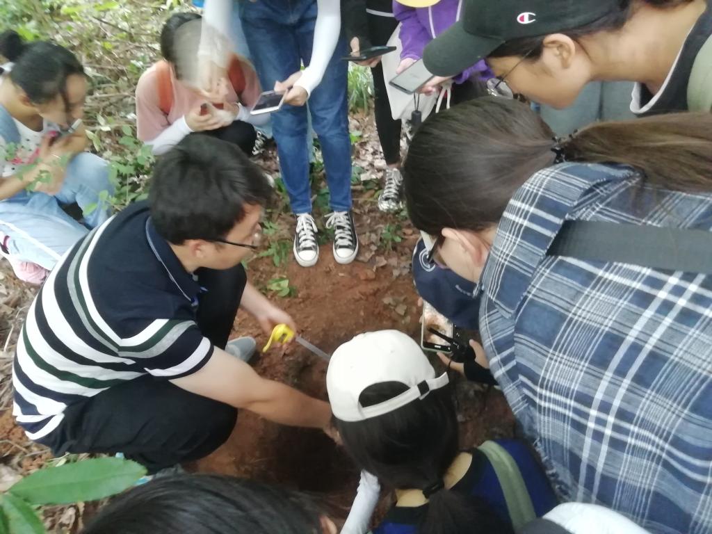 此次自然地理实习涉及地质学、地貌学、生物地理学、土壤地理学等课程。在六天的野外实习中,同学们在老师们的带领下考察了南京六合瓜埠火山群,汤山、钟山和幕府山地区的地形地貌,观察了小茅山、燕子矶的典型黄棕壤土壤剖面,参观了中山植物园和南京地质博物馆等实习地点。在实习过程中,同学们团结协作,以小组为单位,辨识岩石种类、描述当地岩性产状,探索地层蕴含的环境演变信息。为实现理论与实践相对接,同学们使用罗盘实时测量和记录数据,绘制土壤剖面图,使同学们的专业技能得到了提升。学院组织的学科教学团队则通过声情并茂的讲解、耐心细致的引导,将课堂理论与野外实践充分结合,既加深感性认知,又促进理性思考,使学生真正熟悉和掌握自然地理野外工作的基本方法和技能,加深对各门学科基本理论的理解,进一步提高运用理论知识解决实际问题的能力。