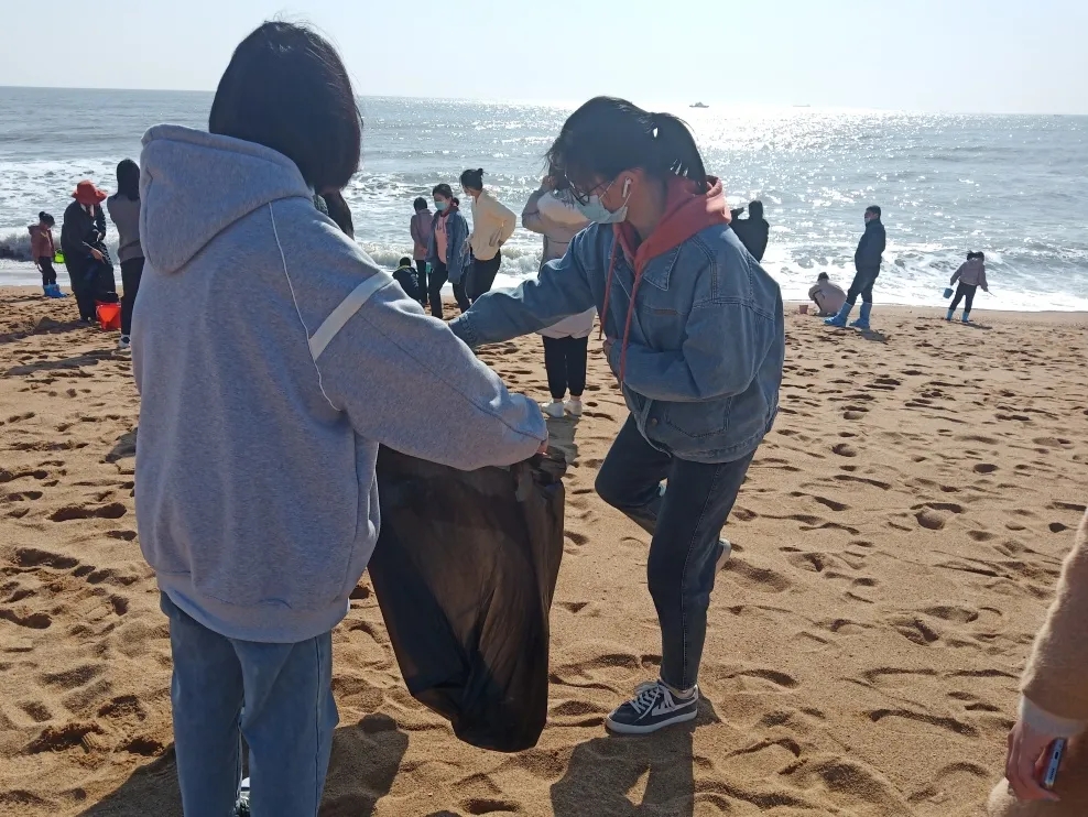 为提高大学生爱护海洋生态环境意识,宣传海洋环保知识,曲园阳光志愿者协会2021年4月4日在日照市万平口景区举办了“第五期护海活动”。