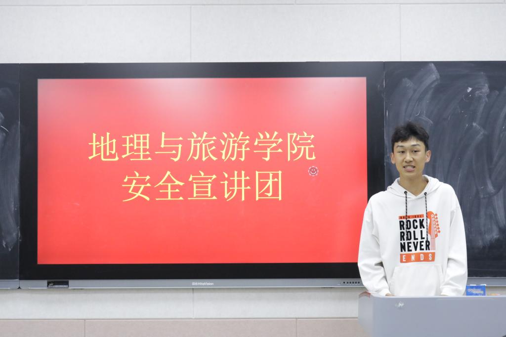安全教育宣讲团于S202进行文化安全教育宣讲活动,本次宣讲活动由宣讲团成员侯登登主讲,地科一班、二班、三班全体同学参加。