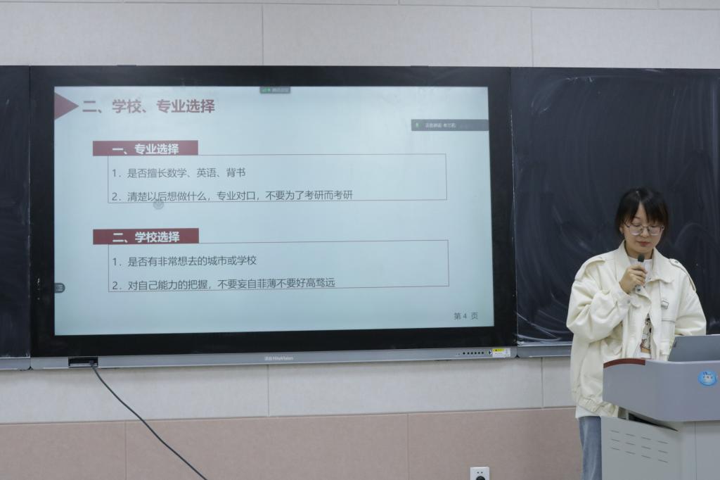 交流会上,五位优秀学子分别从考研专业和院校选择、复习经历、考研建议三方面展开分享。她们向同学们展示自己的日常时间安排和复习规划,为同学们介绍自己参考的考研资料,并在考研学习和心态方面给出自己的建议。现场答疑环节,同学们积极发问,详细交流同学们在学习过程中出现的问题和解决思路。