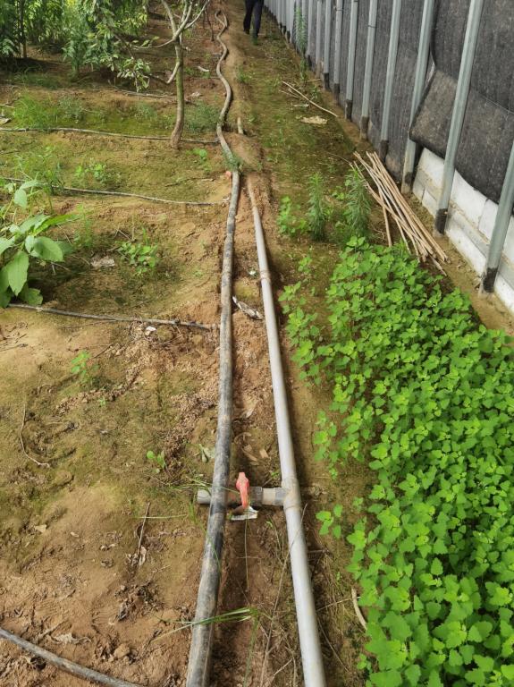 随后,队员们跟随工作人员来到了农作物的种植区域,同时也是餐厅的另一组成部分——采摘园。这个采摘园规模浩大,大约有300亩地。一望无边,仿佛绿色的波浪。田野间种植着各种各样的蔬菜,但该餐厅的主要部分是大棚里的蟠桃。虽然此时的蟠桃已被收获,但并不影响队员们对其生长环境的观察。“当时搞这个主要是想带动大家一起创业致富,所以承包了这片土地,开始种植蟠桃。”农田工作人员说道。“像这些大棚里的作物,都是蟠桃,我们不仅向外边去卖它,而且还发展了采摘业,供游客们自己采摘。”队员们走进大棚,发现大棚内桃树的上面和下面都有许多黑色的水管,这些就是桃树的灌溉措施。“我们主要采用滴灌和喷灌,全是自动化,这样既省人力又节约资源。”蟠桃属于耐旱不耐涝的植物,所以对水的需求量不是很高,从而也达到了节约水资源的目的。