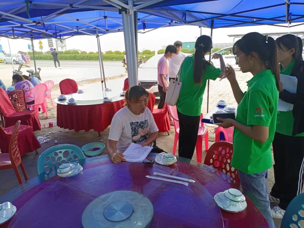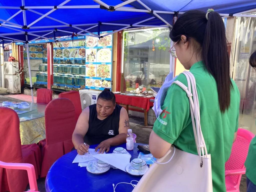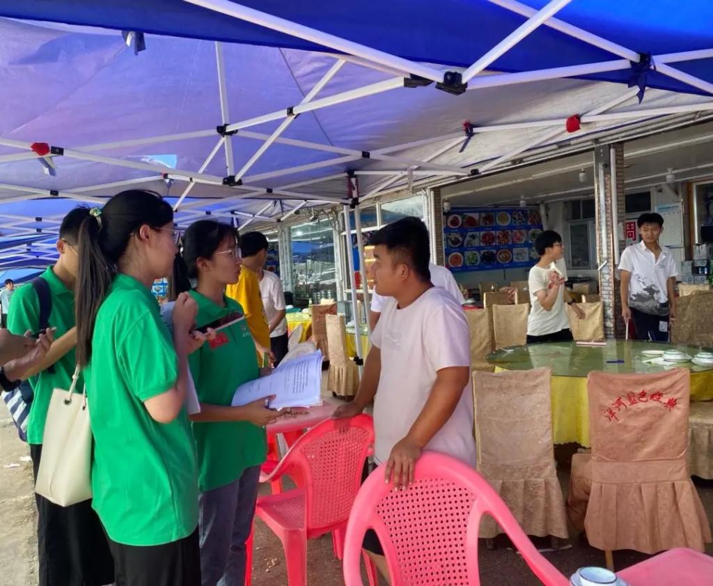 随后实践队员们分组进行调查,活动中队员们穿梭于度假村的渔家之中,将自己手中的问卷传递到一个又一个的游客手里,用自己的耐心、细心为不同的游客讲解“什么是水足迹?”“为什么要珍惜水资源?”等一系列问题,游客们也对水资源的保护和利用问题表示关心,并更加深入的了解了“水足迹”的相关知识。同时,队员们走进渔家,在表明来意后,询问了渔家负责人有关“每天的用水量大概是多少”,“每天需要多少斤的蔬菜”,“日人流量大概有多少”等问题,负责人们也进行了热情耐心的解答。之后,队员们向渔家的负责人宣传并讲解了此次实践活动的目的和意义,呼吁商家们重视水资源的利用和保护问题,学习“水足迹”的有关知识,提高节水意识。烈日炎炎之下实践队员们热情高涨,干劲十足,丝毫不觉疲惫。活动结束后,大家一起反思了此次调查工作中的不足,总结并分析了调查所获得的有关信息,并一同商讨了接下来的实践方案。一天下来,大家收获颇丰。