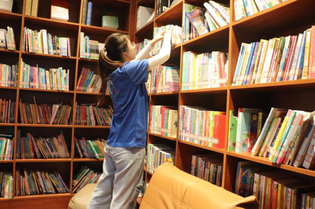 实践队员在实践过程中首先进行图书的整理工作,与以往单纯的清理书籍不同,由于此城市书房开业时间较短,许多书籍还未归类到指定区域,经工作人员讲解队员们了解到城市书房将读物分为了不同区域,儿童区,成人区,图书分类能够更好的解决不同人群的阅读需求,节省读者大量的时间。实践队员便根据工作人员的要求,一本一本的归类整理,有的书籍正反倒置,摆放参差不齐,实践队员将书籍摆正并贴上标签。在整理书籍之余还进行了图书馆卫生的清洁,扫图书架上落的灰……