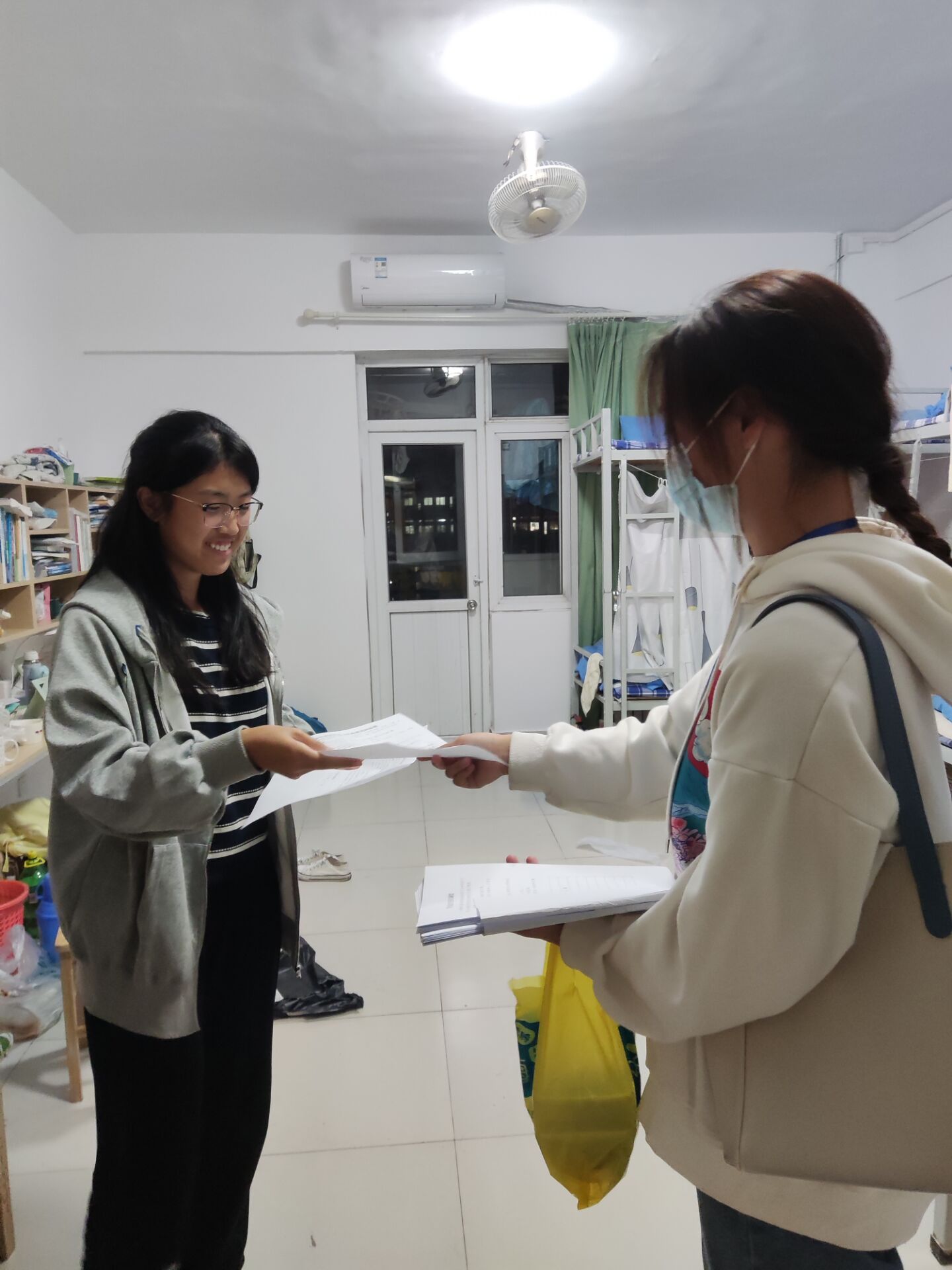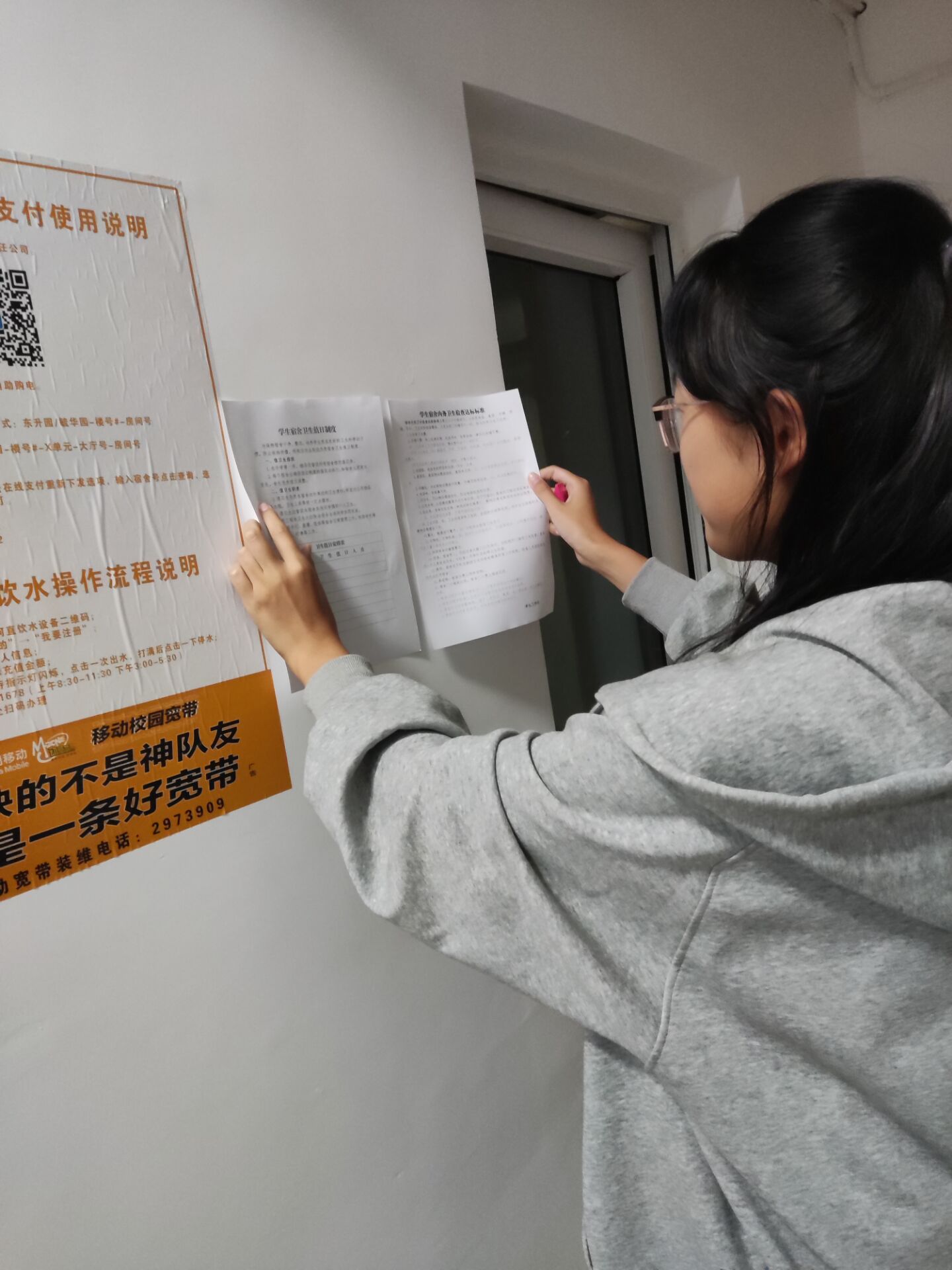 本次活动中,宿舍管理部成员向每个宿舍分发学生宿舍内务卫生检查达标标准,明确内务检查标准,做到人人手中都有一杆秤,人人心中都有一把尺;分发学生宿舍卫生值日制度,把每日卫生落实到个人,培养学生养好良好卫生和劳动习惯,防止疾病传播;分发学生住宿安全管理制度,明确各项宿舍安全问题,使同学们住有所安。各宿舍同学对宿舍管理部成员的宣传表示赞同并积极配合他们的工作。