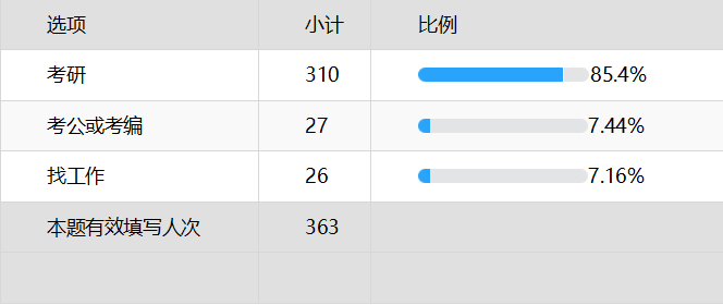开展就业或考研意向调查,深入了解2018级学生的就业意向,根据调查结果,开展精准有效的就业服务工作,有针对性的对毕业生进行相关指导。