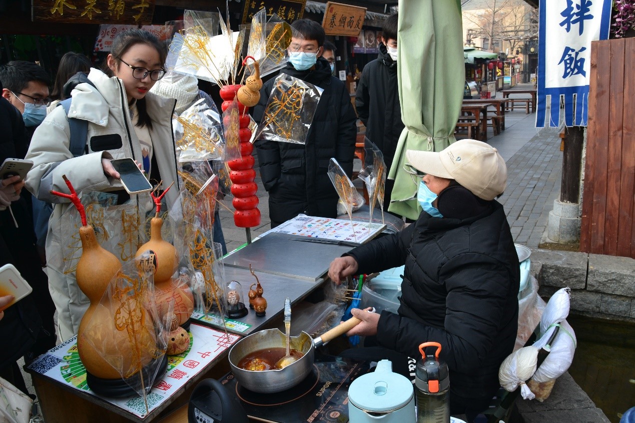 非遗探查小队前往日照市东夷小镇,拜访“糖画”手艺人郑师傅。