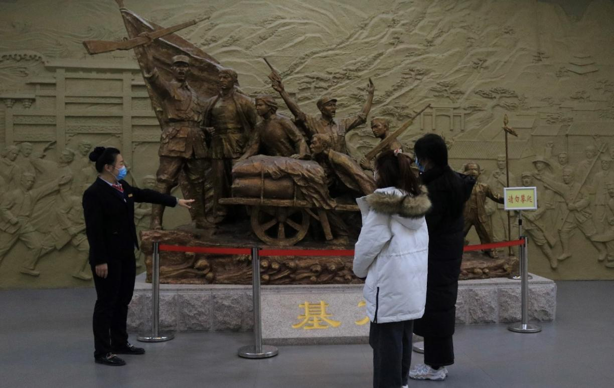 在工作人员的带领下,我们依序参观,仿佛置身于历史的长廊之中,恍若回到了那段激情燃烧的岁月。在一尊革命烈士雕像前,我们被深深的打动。那不仅仅是一尊冰冷的艺术品,而是有血有肉的革命前辈站在我们的眼前。领头的革命战士高举着枪,好像是在振臂高呼,冲啊!后面的战士都举起枪杆和手臂。还有乳臭未干的小孩子,在队伍的后面拿着长矛大声呐喊。虽然他们在那里一动不动,但我好像就站在战争的现场,身临其境的感受到革命军民不畏强敌,不惧牺牲,誓死捍卫祖国的决心与斗志。看着他们英雄壮举,我们深知作为新时代的新青年,作为一名光荣的共青团员,应该向革命英烈前辈学习,热爱祖国,乐于奉献,用自己的毕生心血捍卫无数革命英烈用鲜血换来的祖国疆土。