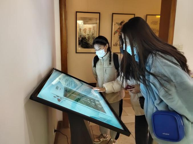 在游馆的时候,我们注意到,博物馆内有许多自助查询台,帮助游客深入了解风筝文化的发源与发展。据介绍人说,自引入这种高科技机器后,大大减轻了馆内讲解员的压力,而且文字与图画共同展示可以方便游客理解。以更新颖的方式展示非遗文化也可以为其注入新活力,响应当今传承与创新并行的号召。