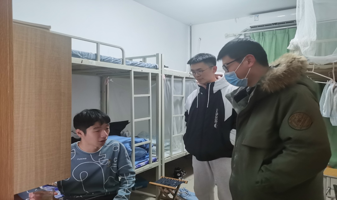 走访中,各辅导员与同学们亲切交流,为同学们加油打气,希望同学们快速回归学校生活状态,投入到新的学习生活中;询问各位对于新学期的打算与规划,提醒各位同学合理安排时间。要努力学习,也要积极锻炼身体,加强身心健康。在学生宿舍中,各辅导员仔细查看各种生活设施,检查用电安全等方面的情况,并提醒同学们要提高安全防患意识,从细微处消除安全隐患,不可粗心大意。同时,各辅导员提醒同学们要注意开窗通风,防止发生传染性感冒。