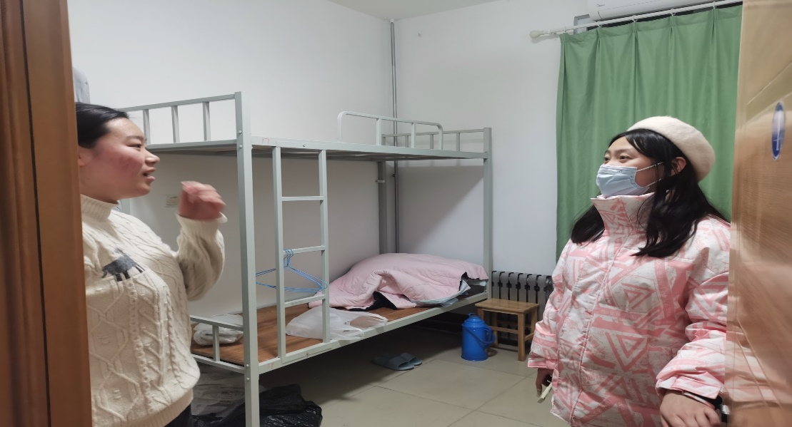 2018级辅导员田青、2019级辅导员李梅、2020级辅导员张乃宁、2021级辅导员董青前往学生宿舍,给返校同学送去关怀和慰问并开展宿舍安全隐患排查工作。