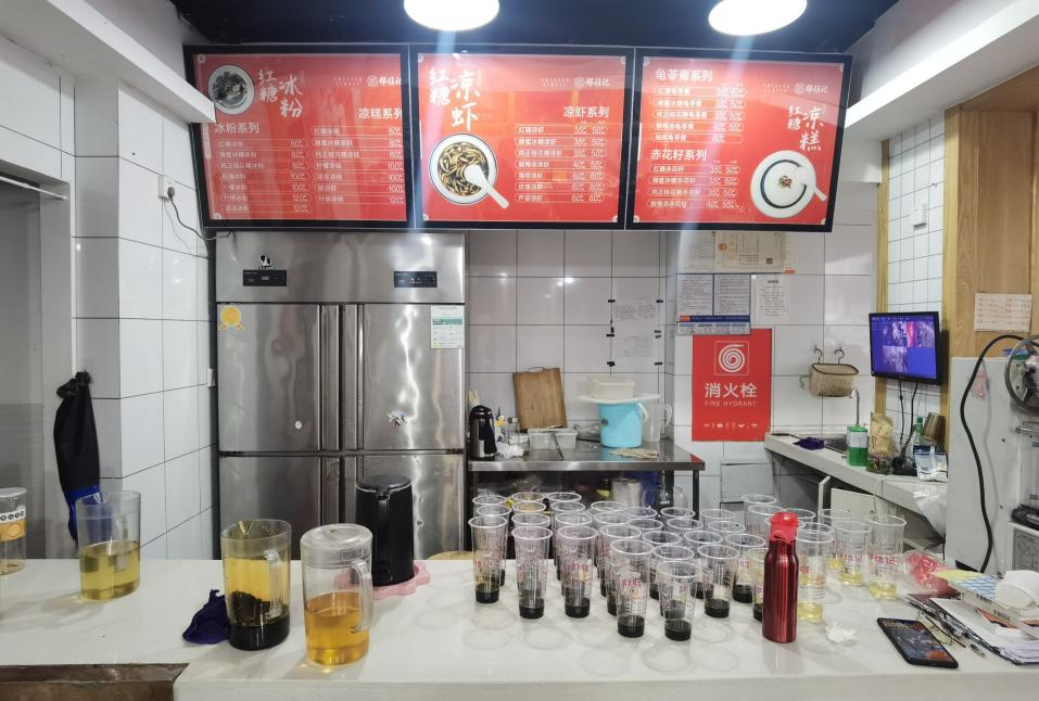 随后,跟随郑慧女士的步伐,我们踏进了小店的内部,一股清甜的香味扑面而来。闭上双眼仿佛又回到了儿时那段美好的时光,闲暇午后的一杯甜甜的凉虾便可以满足每个小孩闹腾的心。现如今,大量奶茶等新型饮品逐渐霸占市场,凉虾这门传统的手工饮品也逐渐淡出人们的视线。而袁鸿斌先生一家人不畏艰难险阻,坚持传承这门凉虾制作手艺,为食品类非物质文化遗产保留了属于它们的一方小天地,更为我们这一代人保留了值得回忆的童年美好回忆。我想,不仅是凉虾,还有许多的非遗产品都像这样走过了几十年甚至上百年的历史,见证了几代人的青春。作为新时代的青年,我们每个人都有责任有义务守住这些可贵的非物质文化遗产,在它们身上回味往昔之时,也不会忘记汲取每一份非物质文化遗产中所蕴涵的可贵品质。