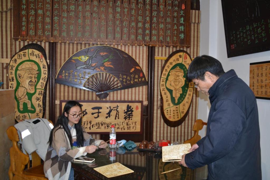 我在沉浸于自己直观感受的同时,也深入反思了自己在整个实践过程中的所得和所悟。在和秦师傅的交谈中我们了解到,木雕花船最初是渔民出海前放在天后宫用来祭祀的供品,祈求平安和满载而归。近代以来,来威海的外国人看到小巧的木雕花船十分喜爱,于是买来做纪念品。后来外国游客不断增多,船模的需求量越来越大,类型也愈加丰富,船模备受外国游客青睐。小小的船模看似是一个简单的工艺品,实则它身上布满了历史的痕迹,它或许也承载了一个个家庭的希望。