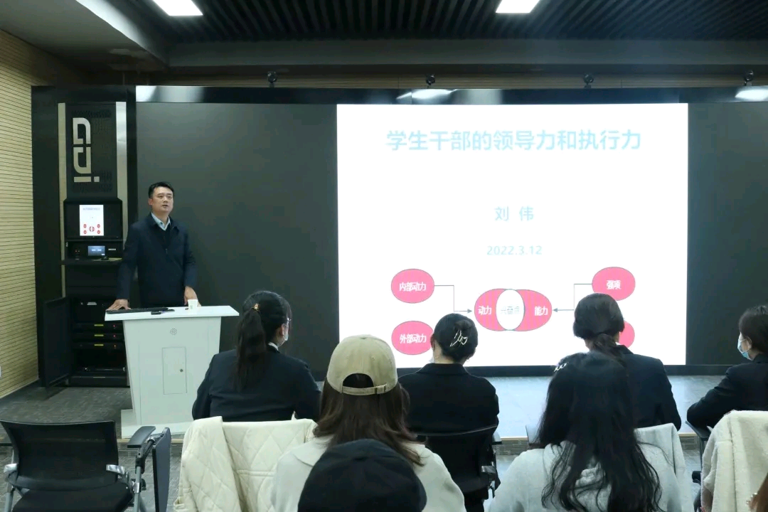 刘伟以“学生干部的领导力和执行力建设”为题,从领导力和执行力两个方面系统阐述了“领导”的责任和其承担的中流砥柱作用。从干部基本定义、领导分类基本方法、领导角色基本定位、领导艺术基本框架、领导艺术基本特征、领导艺术基本论点六个方面具体论述领导力建设的“六个基本”。执行力培养方面,强调工作中要明确角色定位,运用哲学思维,注重团队意识,强化属下情怀,提升能力素养,明晰部门认知,突出工作重心,创新工作方略,重在身体力行,从这九个方面阐述了如何做一名能够上传下达服务师生的合格的学生干部。他特别强调学生干部骨干在工作中要充分调动大家积极性,勇于创新,敢于放手,要奖罚分明,善于总结勇于检讨自己,找到领导力的“兴奋点”。最后,他重点强调指出,学院历届团委学生会有着优良的传统,营造了良好的院风学风。时值新一届团委学生会换届之际,要求大家秉承优良传统,团结协作,不断创新,热心为师生服务。工作中要多调研、多倾听,严禁官僚主义作风和不良习气。要秉持“从学生中来,到学生中去”的基本观念,努力将所见所学转化为自身能力。