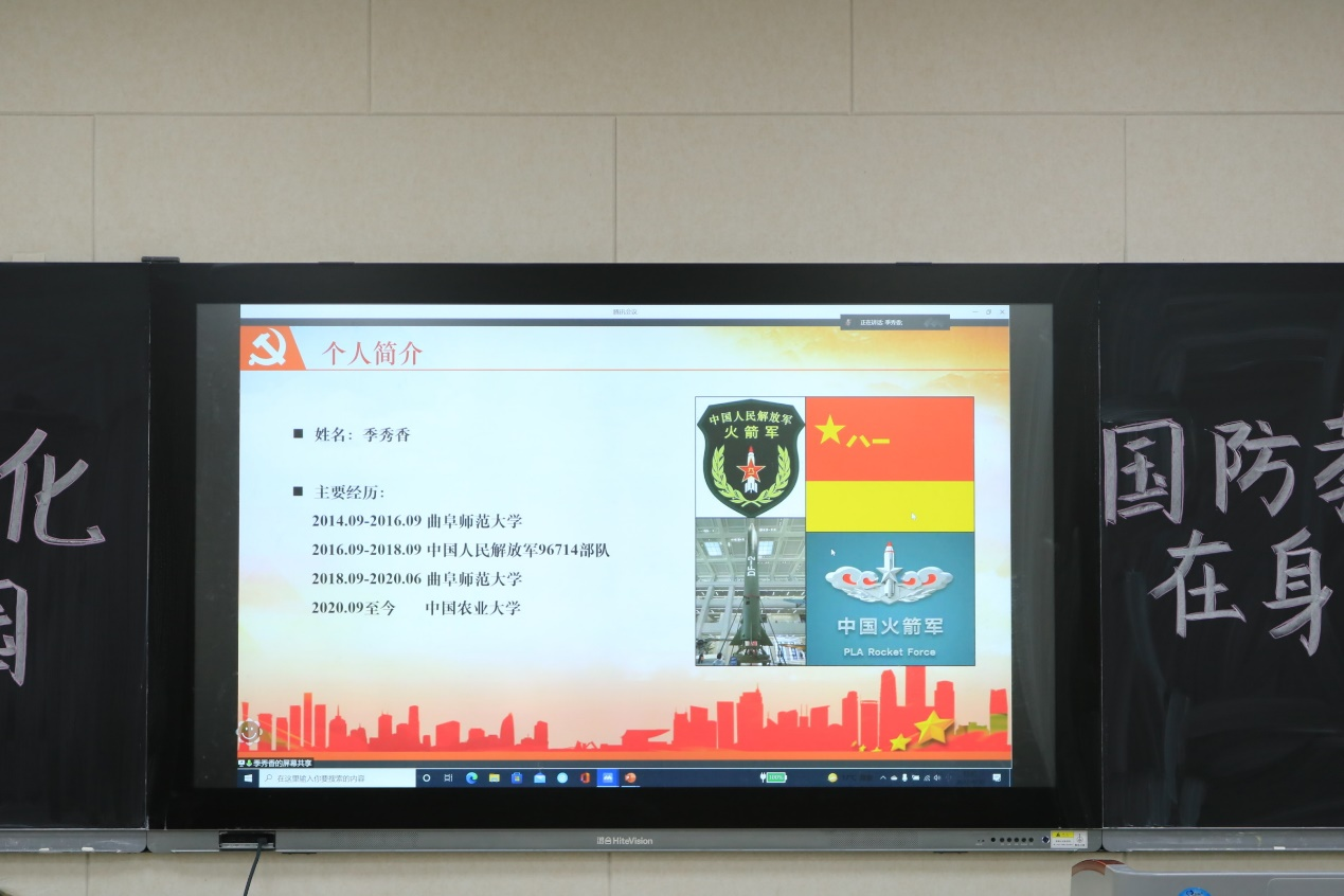 据悉,季秀香是一个上得了战场、上过了赛场、进得了考场的优秀学生;曾经连800米都有困难的她,经过军营的历练,竟然斩获了军运会女子3000米第一、枪支分解结合第一、四百米战术障碍第一等荣誉;退役回校后成绩依然优秀,2020年参加硕士研究生入学考试,复试以第一名的成绩被中国农业大学录取;目前,正在紧张有序的从事研究生学习和研究工作。会上,张乃宁详细介绍了大学生参军入伍的各项政策以及注意事项,鼓励同学们积极响应国家号召,参军入伍。