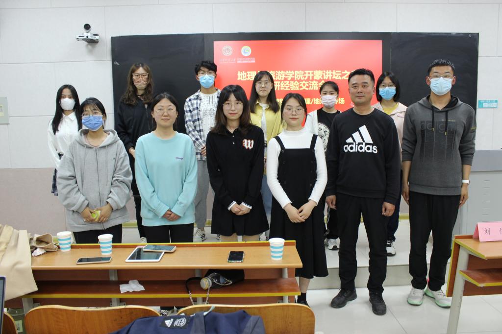 于S206举办“开蒙讲坛”之人文地理和自然地理/地理学专场考研经验交流会。考研优秀代表岳超、王泓然、孙苑灵、杜冰清主讲。学院党委副书记刘伟出席交流会。