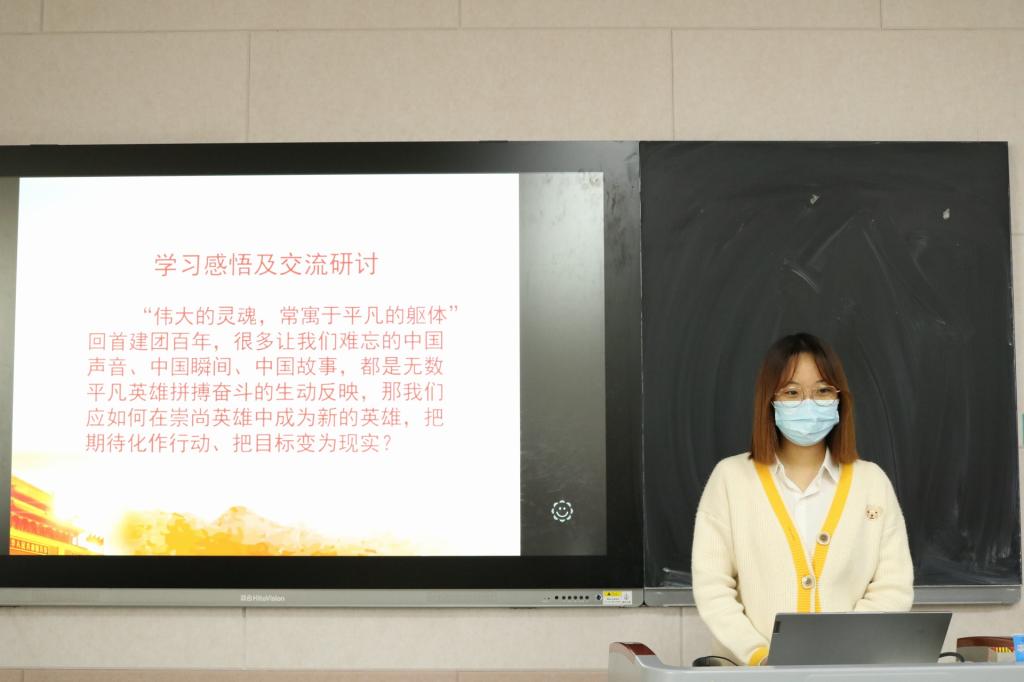 课程从爱国、进步、民主、科学出发,邀请四位高校马克思主义学院讲师、研究员、副教授讲述了戍边战士陈祥榕“清澈的爱只为中国”的感人事迹,展现了陈延年兄弟英勇赴死的无畏精神等。以前和现在,过去和将来,伟大民族精神一直活跃在祖祖辈辈中国英雄的身躯之中。平凡铸就伟大,英雄来自人民,每个人都了不起,每个人都可以通过努力成为平凡英雄!直播结束后,学生们对如何在崇尚英雄中成为新的英雄,如何把期待化为行动,把目标化为现实,进行热烈讨论。回首建团百年,理想信念的传承从未间断,崇高的理想流淌在一代又一代的青年血液中。作为新时代中国青年,吾辈更应树立崇高理想,坚定理想信念,听党话,跟党走,认真学习,认真工作,以奋斗创造不凡的价值。同学们纷纷表示,中国已经迈入了新的时代,年轻人应满怀热血和期待,喜迎二十大、奋进新征程,为祖国的未来尽力拼搏,为学院建设打牢思想基础。