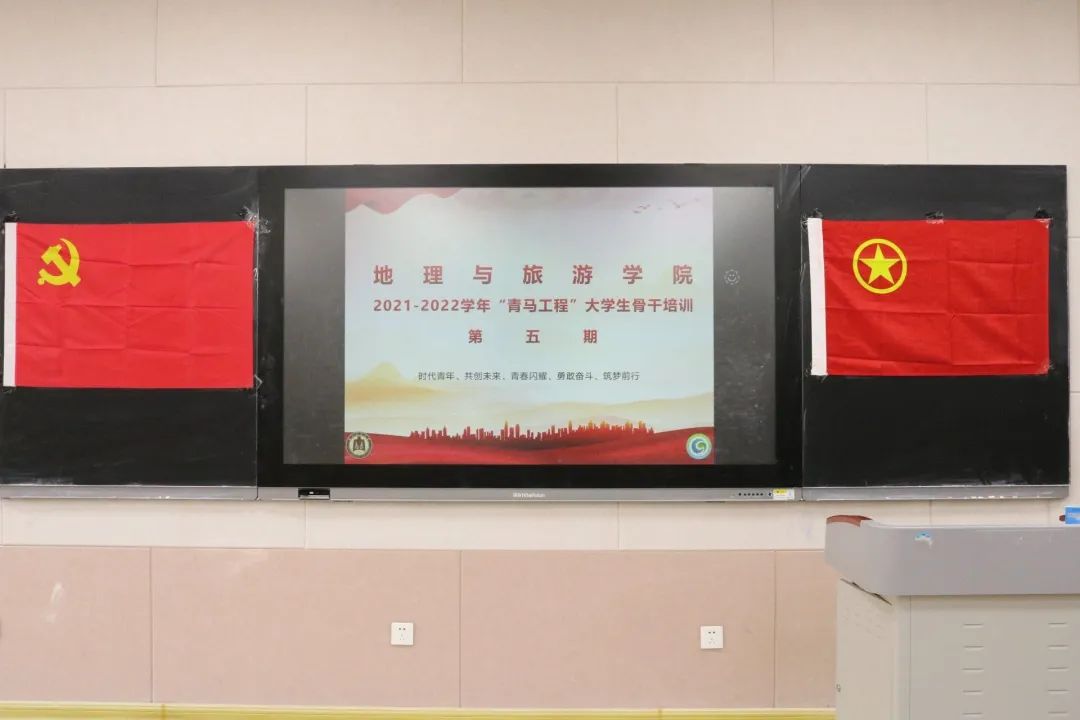 于S205举行2021-2022学年“青马工程”大学生骨干培训第五期。本次培训会由我校团委书记孔轶众、2019级地图学与地理信息系统研究生王慧、2018级公费师范生张新宇主讲,番茄社区