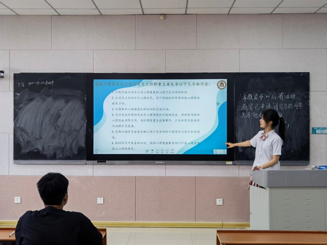 本次心理委员与心理信息员培训会议从心理委员与心理信息员的职责、大学生常见心理问题的识别、大学生常见心理问题的应对以及心理委员与心理信息员自我调节与成长四个方面展开。宣讲人强调,各委员需重点关注多种心理问题特征并存的同学。随后,宣讲人又从人际交往、恋爱及性意识困扰等几大类型逐一讲解大学生常见的心理问题。同时,为了缓解同学们的心理问题,宣讲人补充讲解多种自我调节的方法。会议结束后,同学们纷纷表示获益良多。