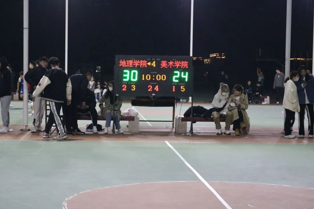 女篮队员完美配合,为队伍拿下头彩。美术学院队也不甘落后,双方队员情绪高涨,你争我夺,赛况如火如荼,比分持续追平,过程扣人心弦。地理球队娴熟的球技与默契的配合,灵活多变的进攻战术,牢固有序的防守阵势,在球场上展现得淋漓尽致,队员们个个激情高昂,在球场上挥洒汗水,展示自我。场下的观众们则为球员们加油呐喊,现场气氛紧张而又热烈。经过一番激烈的比拼之后,地理女篮凭借高昂的斗志和饱满的激情,以30:24的比分赢得本场比赛的胜利。