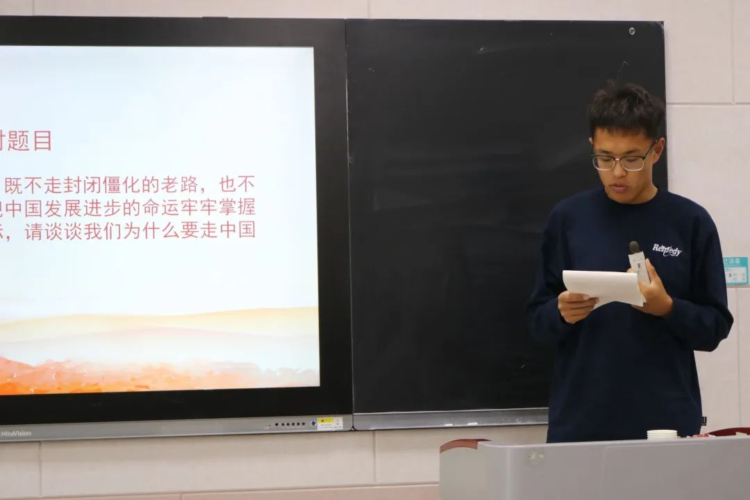 研讨第一部分,感悟党的自我革命所进行的艰苦探索。入党积极分子代表学习和介绍了建党以来的多次具有里程碑意义的自我革命,说明党的自我革命的重要意义。他们说到,勇于自我革命是中国共产党区别于其他政党的显著标志,自我革命精神是党永葆青春活力的强大支撑,身为时代青年,要加强对党史和时事的学习,树立自省意识,坚持守正创新,坚持自我革命,筑牢信仰之基,补足精神之钙。